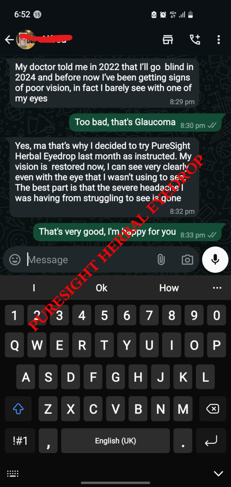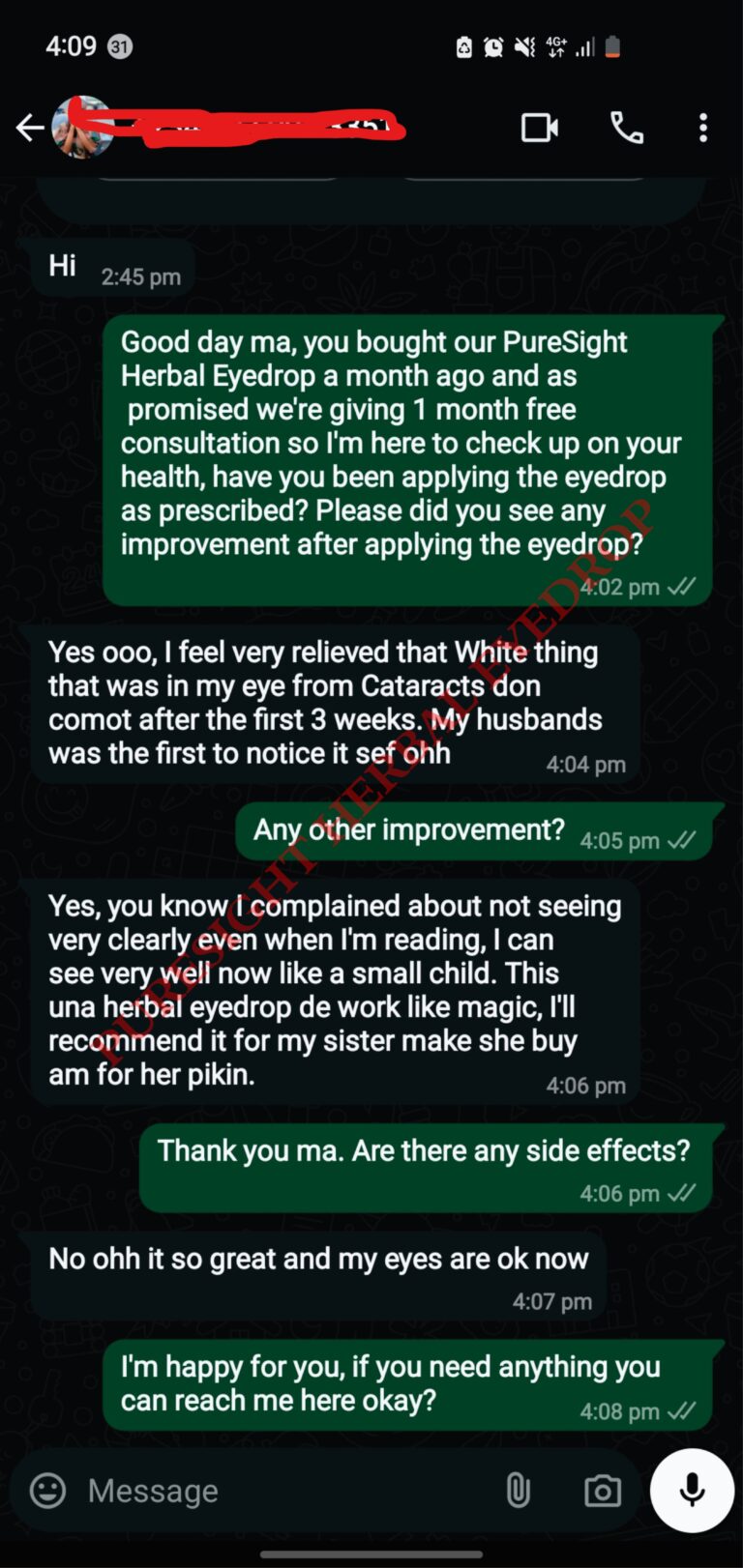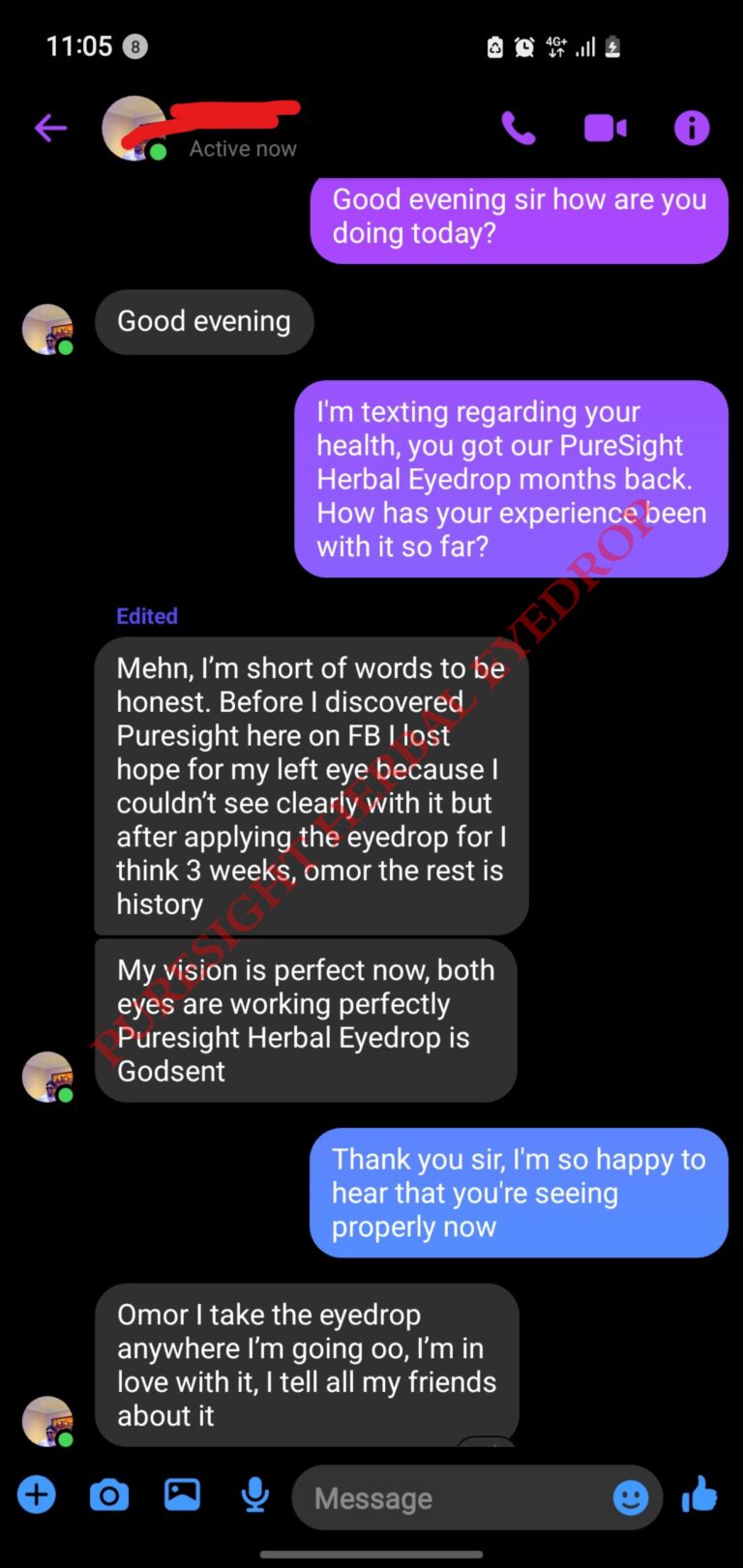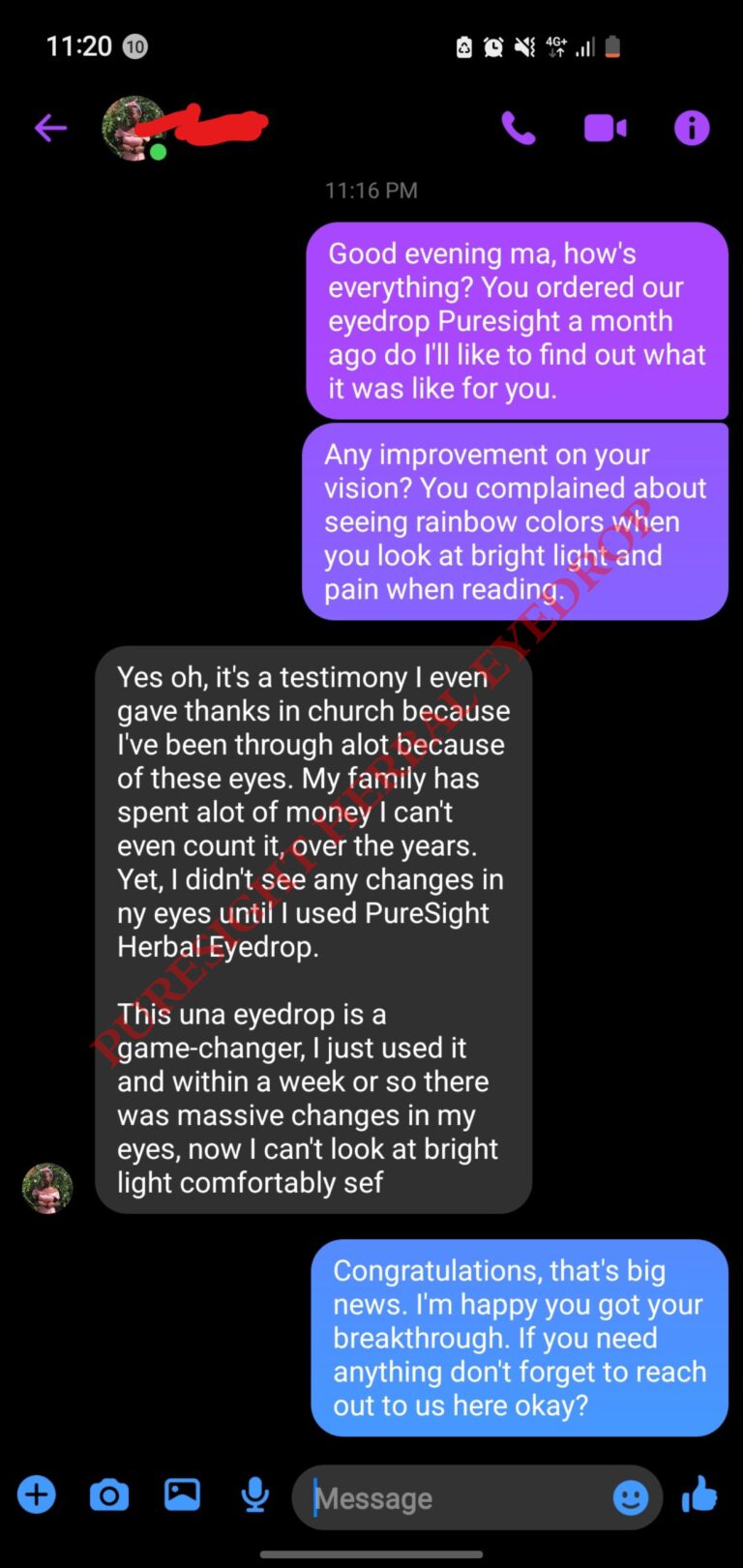 One night, as I lay in bed with unbearable pain and my pillows soaked with tears, I stumbled upon a testimony about PureSight Herbal Eyedrop.