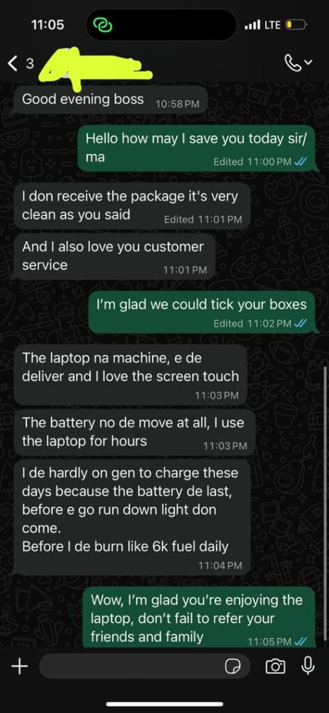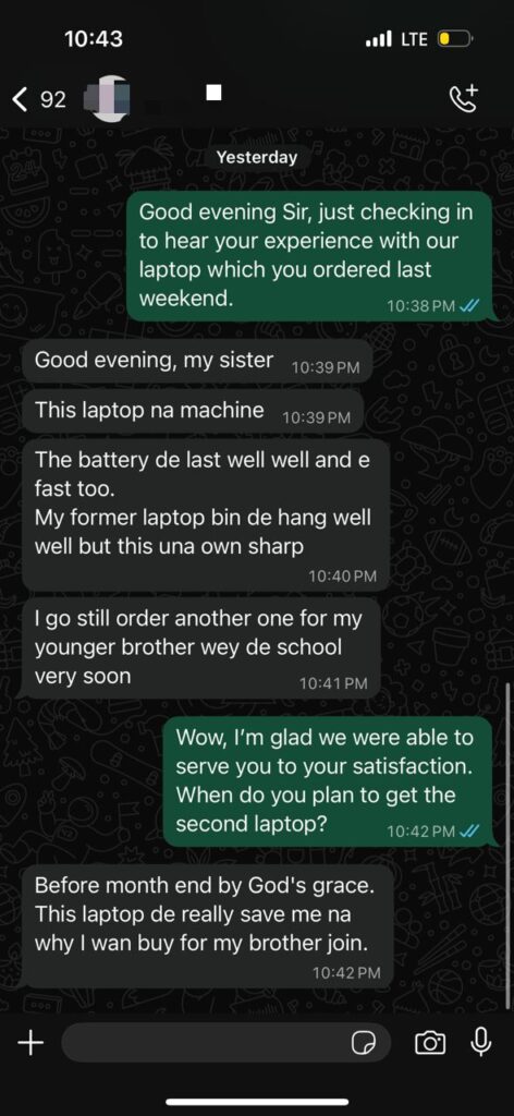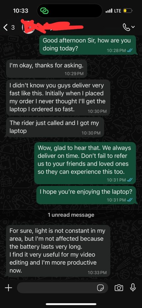 With our fast same day delivery, you’re guaranteed to smile at your phone just like Mrs. Fumi who made an order for her Son who’s a student.